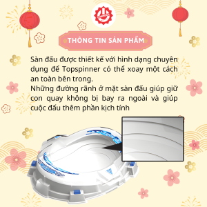 - Đấu trường chuyên nghiệp: Với sân đấu rộng rãi và thiết kế đặc biệt giúp quay con quay dễ dàng, đấu trường tạo cảm giác chân thật và sống động như một cuộc thi đấu chuyên nghiệp.