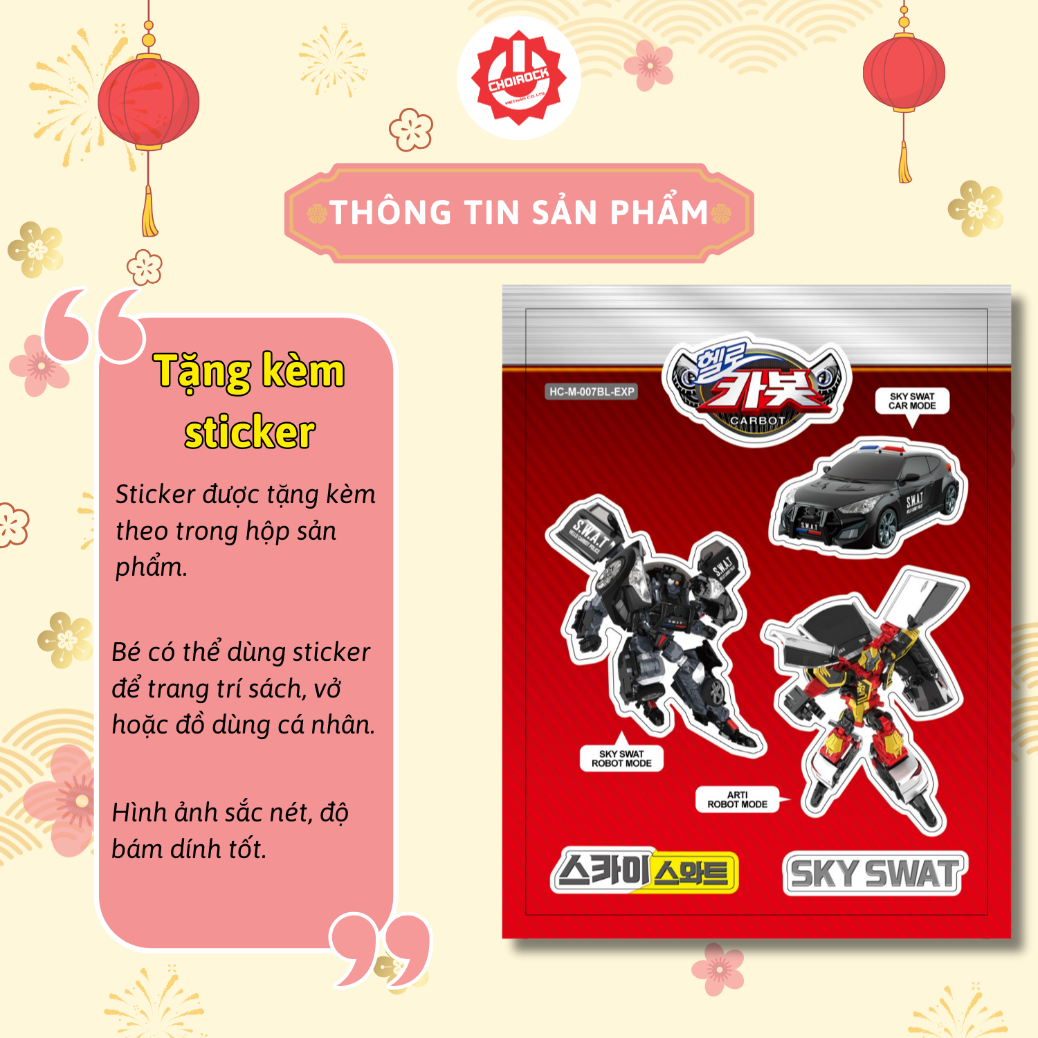 Trong thế giới đồ chơi biến hình, HELLO CARBOT – Mini Sky S.W.A.T là một sản phẩm đầy ấn tượng, mang đến sự kết hợp hoàn hảo giữa xe cảnh sát đặc vụ và khả năng chuyển đổi thành robot mạnh mẽ. Với thiết kế lấy cảm hứng từ những lực lượng đặc nhiệm, món đồ chơi này chắc chắn sẽ trở thành người bạn đồng hành thú vị cho trẻ em trong hành trình khám phá trí tưởng tượng vô tận. Mini Sky S.w.a.t được mô phỏng theo một nhân vật trong bộ phim hoạt hình cùng tên Hello Carbot.