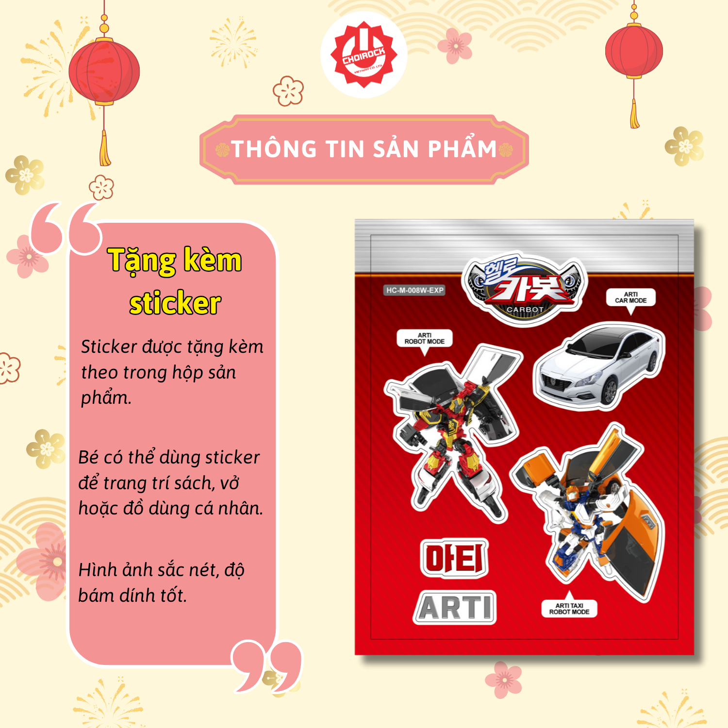 Mini Arti sở hữu kiểu dáng xe hơi đậm chất tương lai, kết hợp với khả năng biến hình robot mạnh mẽ. Những chi tiết trên sản phẩm được thiết kế tỉ mỉ từ logo xe cho đến kính xe, giúp bé dễ dàng nhận diện và hứng thú ngay từ cái nhìn đầu tiên.