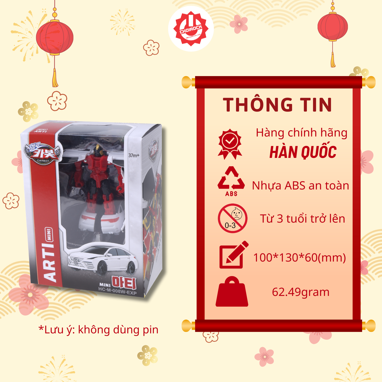 Chỉ với vài bước đơn giản, Mini Arti có thể biến đổi từ xe hơi sang robot một cách linh hoạt. Hệ thống khớp nối thông minh giúp sản phẩm hoạt động mượt mà, đảm bảo sự an toàn và bền bỉ.