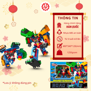 Điểm độc đáo của Road Saver là khả năng hợp thể từ ba xe hơi thành một robot khổng lồ. Các bộ phận được thiết kế chính xác, dễ tháo lắp giúp bé thao tác đơn giản và an toàn. Mỗi chiếc xe đều có hình dáng riêng biệt và đóng vai trò quan trọng trong việc tạo nên hình dạng hoàn chỉnh của Road Saver.