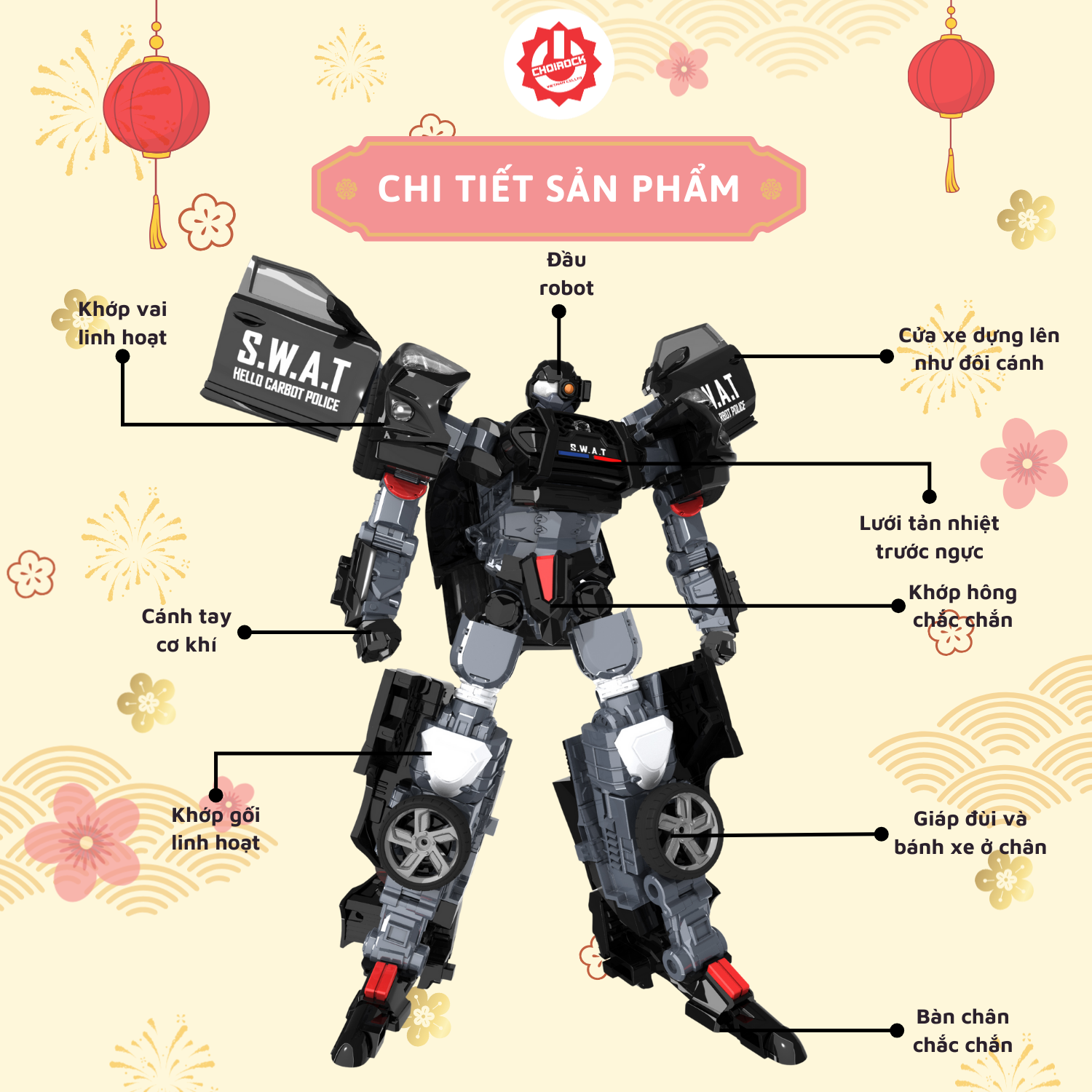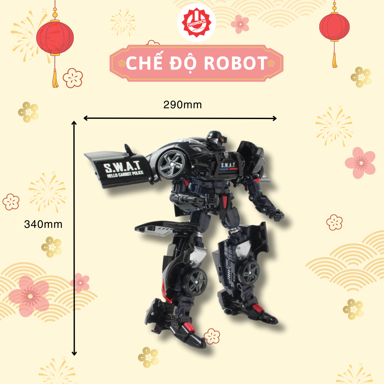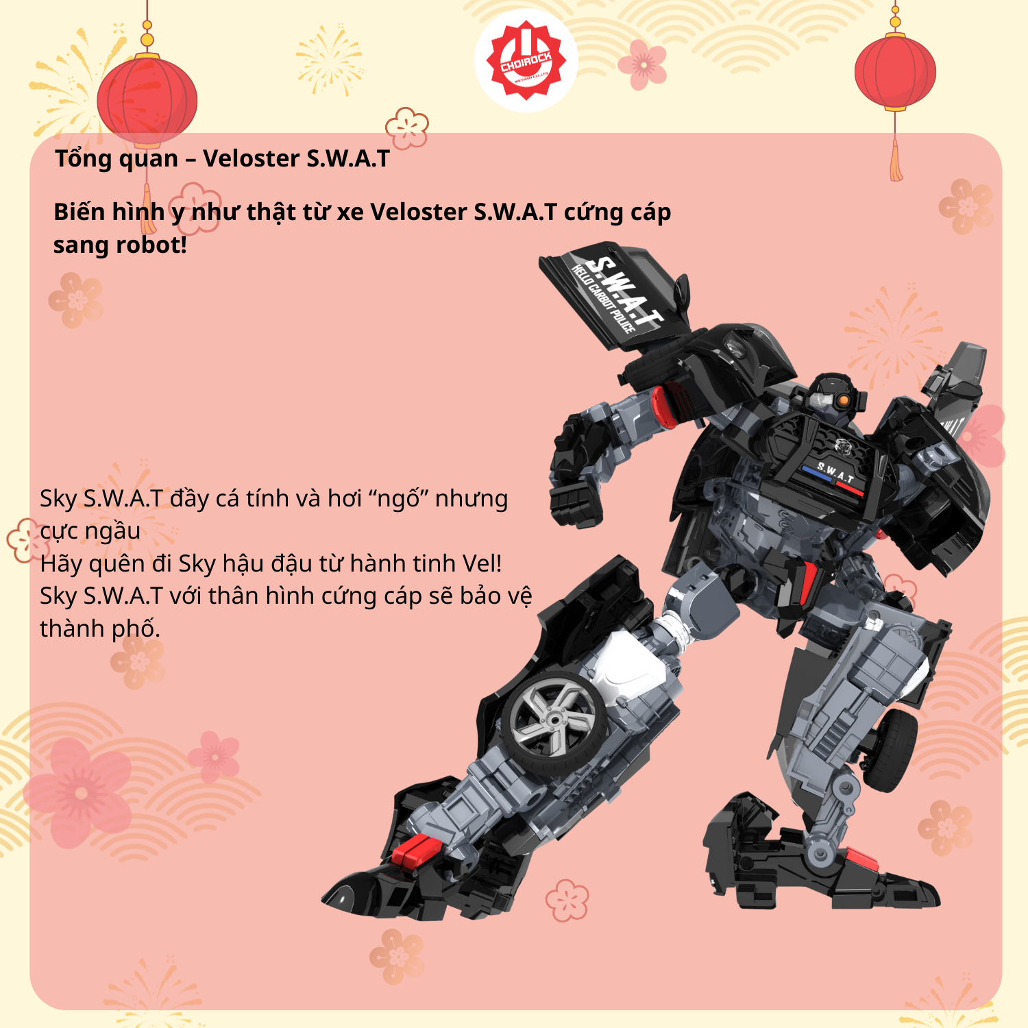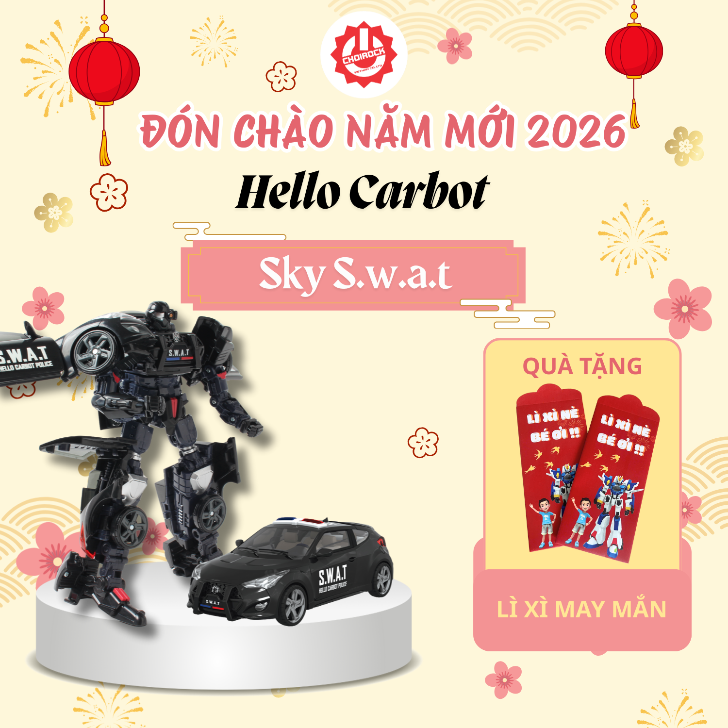Được nhập khẩu chính hãng bởi Choirock Vietnam, HELLO CARBOT Sky S.W.A.T là món quà tuyệt vời cho các bé yêu thích đồ chơi xe hơi biến hình và robot chiến binh.