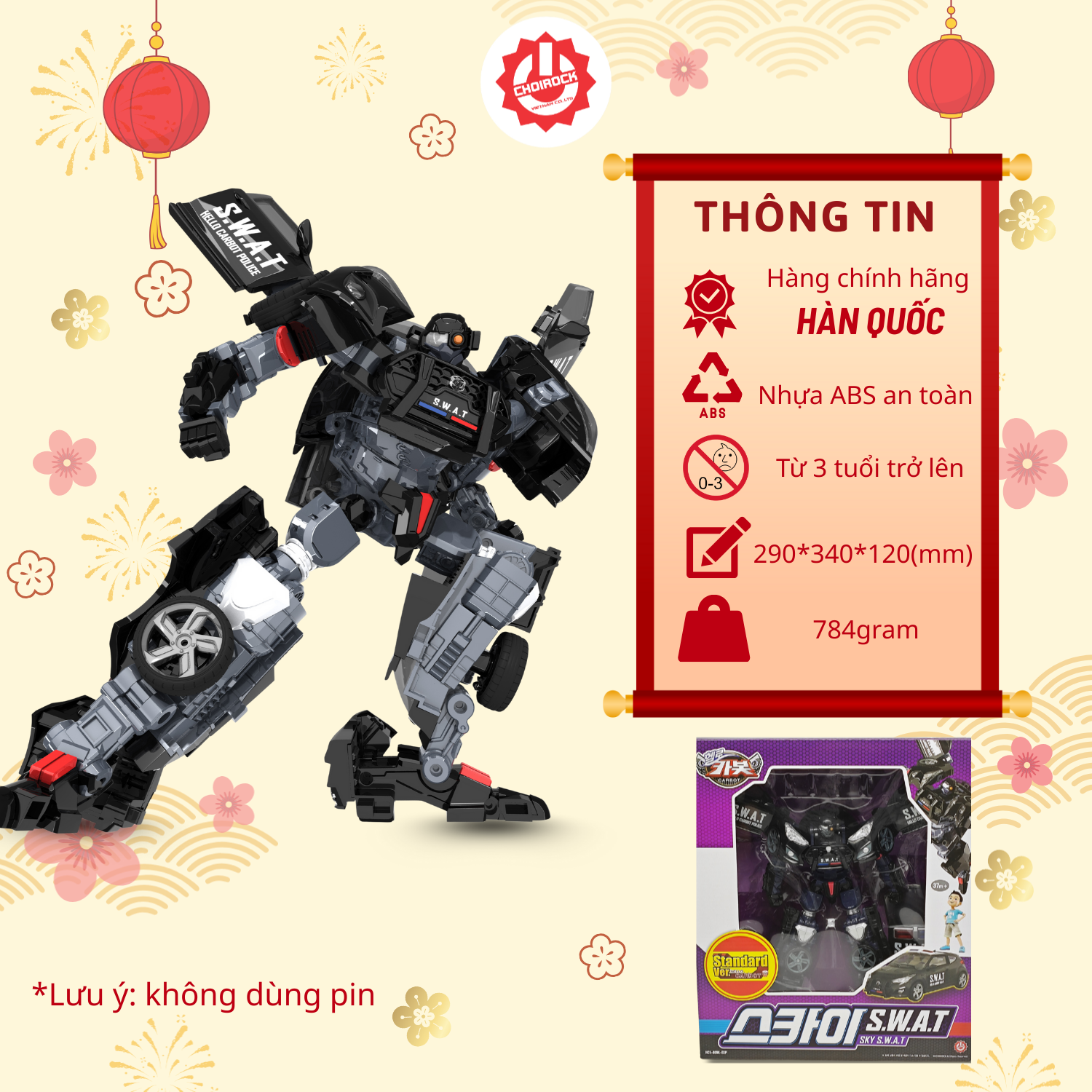 Sản phẩm được làm từ nhựa ABS cao cấp, không chứa chất độc hại, đạt tiêu chuẩn an toàn quốc tế, phù hợp cho trẻ từ 3 tuổi trở lên. Nhập khẩu chính hãng từ Hàn Quốc, Sky Swat đảm bảo chất lượng, độ bền và độ hoàn thiện cao, cho bé chơi lâu dài và an tâm.