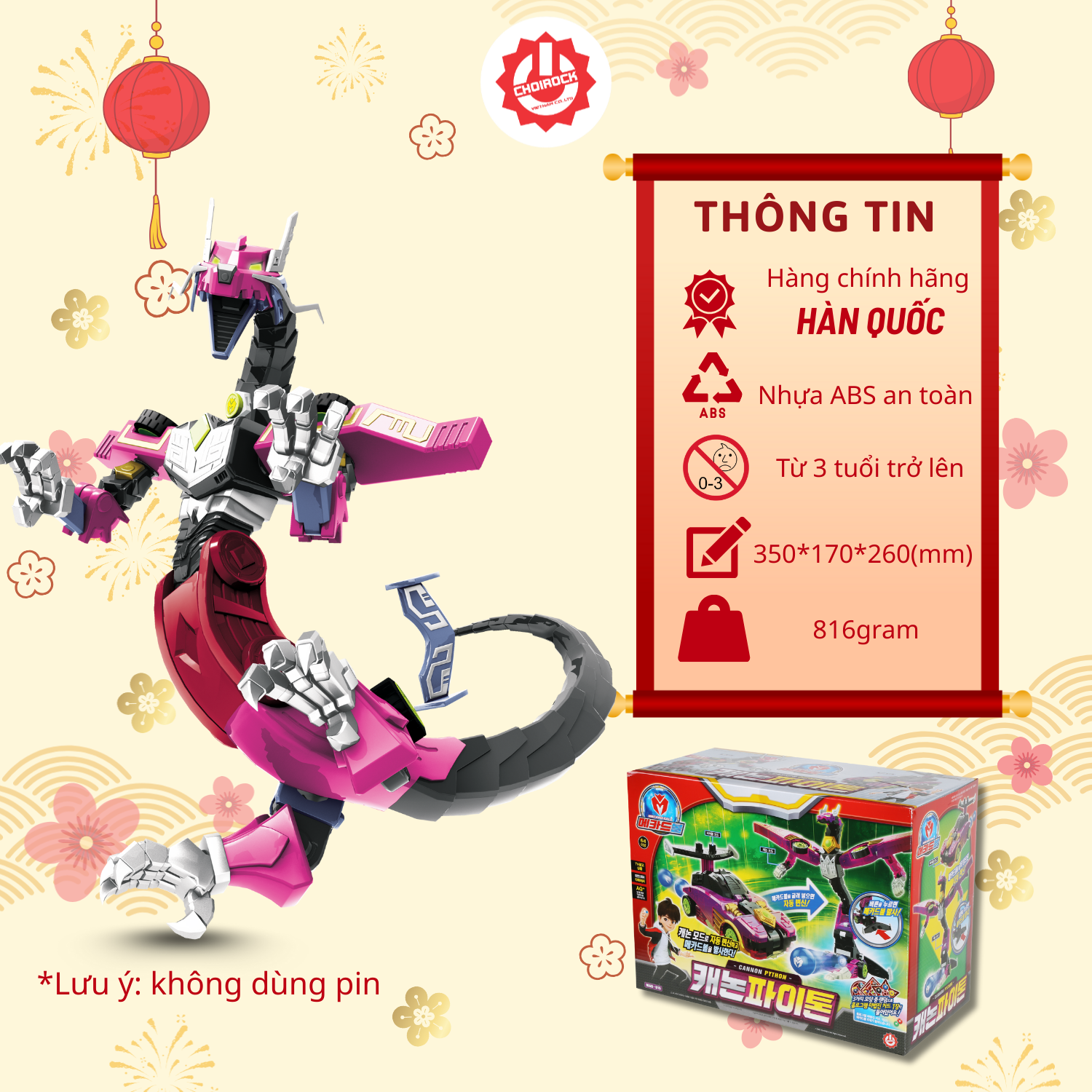 Sau khi biến hình, Cannon Python không chỉ dừng lại ở một nhân vật rồng, mà còn trở thành một súng bắn bóng Mecard Ball mạnh mẽ. Chức năng này giúp các bé tận hưởng cảm giác nhập vai vào những trận chiến thú vị, tăng thêm sự phấn khích khi chơi. - Chất liệu cao cấp, an toàn tuyệt đối