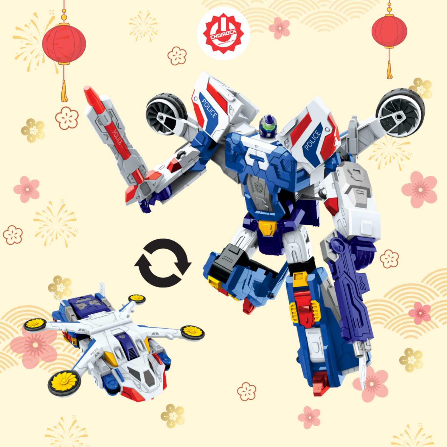 Trong thế giới Hello Carbot, các chiến binh HyperCops luôn là biểu tượng cho công lý, sức mạnh và tinh thần đồng đội. Nổi bật trong đó là Drocop – robot cảnh sát kết hợp sức mạnh của trực thăng, mang đến sự cơ động và khả năng chiến đấu vượt trội. Với thiết kế hiện đại, đôi cánh mạnh mẽ và vũ khí sắc bén, Drocop luôn xuất hiện kịp thời để bảo vệ hòa bình và chống lại thế lực xấu xa.