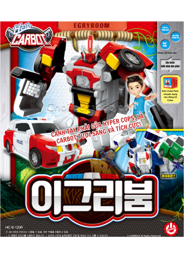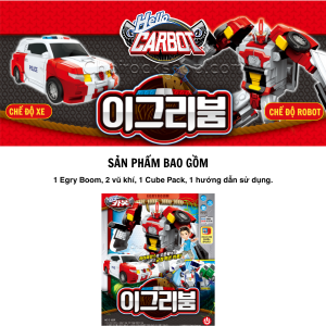 Trong vũ trụ Hello Carbot, những anh hùng robot luôn mang trong mình sứ mệnh bảo vệ công lý và đem lại hòa bình cho thế giới. Nổi bật trong số đó chính là Egryboom – chiến binh quả cảm của đội HyperCops. Với dáng vẻ mạnh mẽ, tốc độ ấn tượng và tinh thần quả quyết, Egryboom luôn sẵn sàng xuất hiện để ngăn chặn cái ác và bảo vệ mọi người.