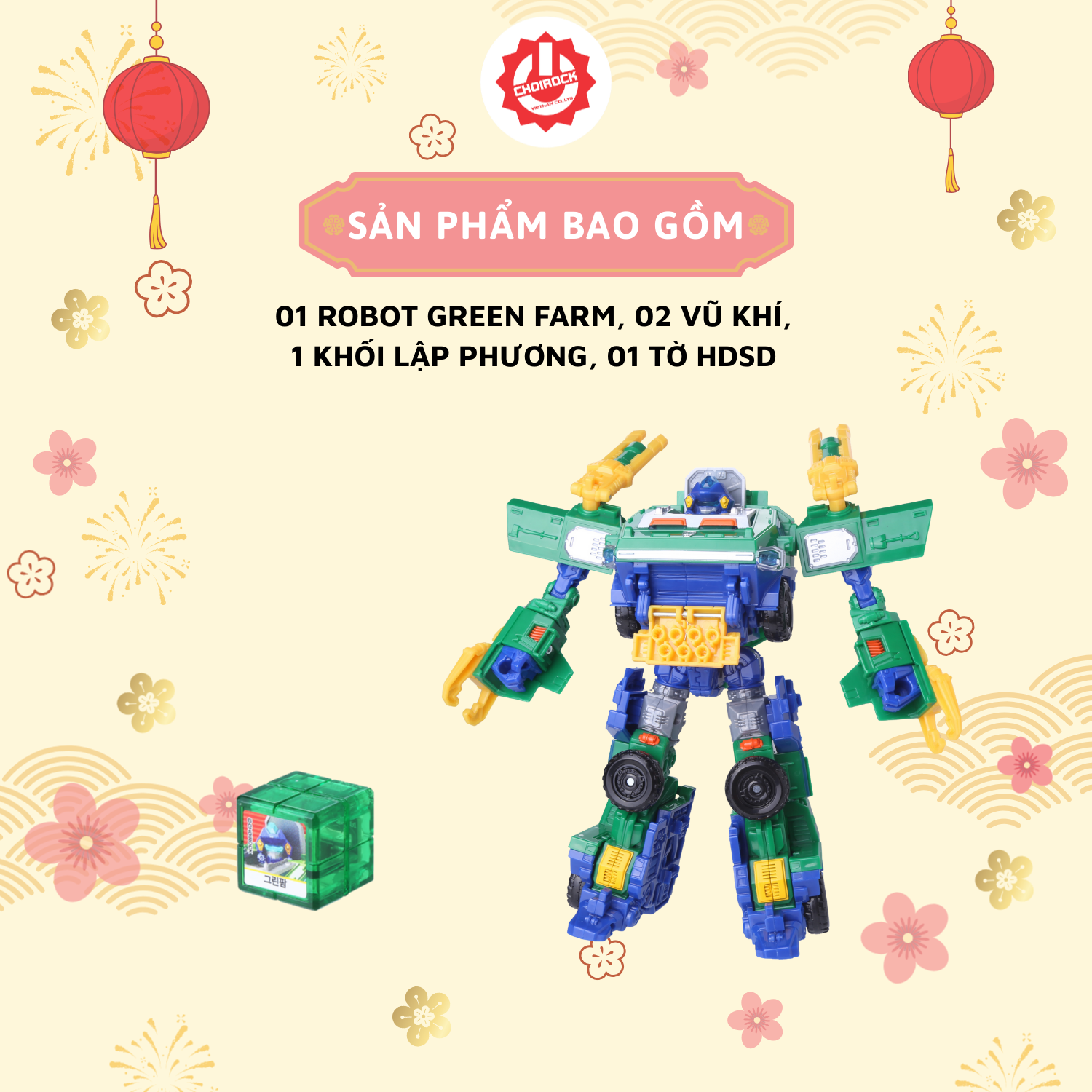 Với Greenfarm, bé sẽ được đồng hành cùng một chiến binh robot dũng mãnh, không chỉ giúp bé phát triển tư duy mà còn tạo ra những trận chiến kịch tính trong thế giới Hello Carbot. Đây là món quà lý tưởng cho những fan nhí yêu thích các nhân vật trong Hello Carbot.