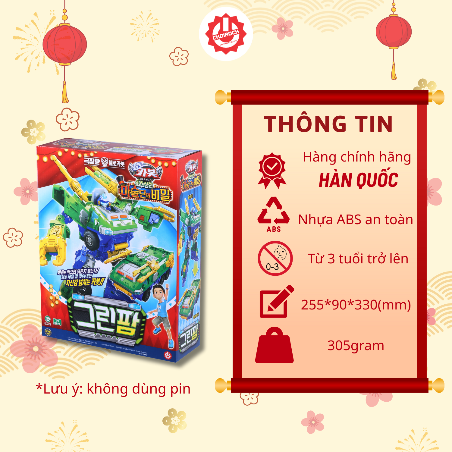 Đồ Chơi Choirock với các chi tiết đều được làm từ chất liệu nhựa cao cấp, trải qua quy trình sản xuất nghiêm ngặt, đảm bảo an toàn cho trẻ nhỏ do hoàn toàn không chứa thành phần hoá chất độc hại cho sức khoẻ.