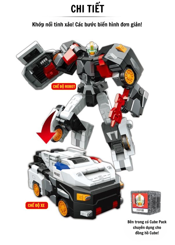Sản phẩm được chế tác tỉ mỉ từ nhựa ABS cao cấp, an toàn cho trẻ em. Các khớp nối linh hoạt cho phép bé dễ dàng biến đổi giữa hai chế độ xe và robot, đồng thời kích thích trí tưởng tượng và khả năng sáng tạo trong trò chơi nhập vai.