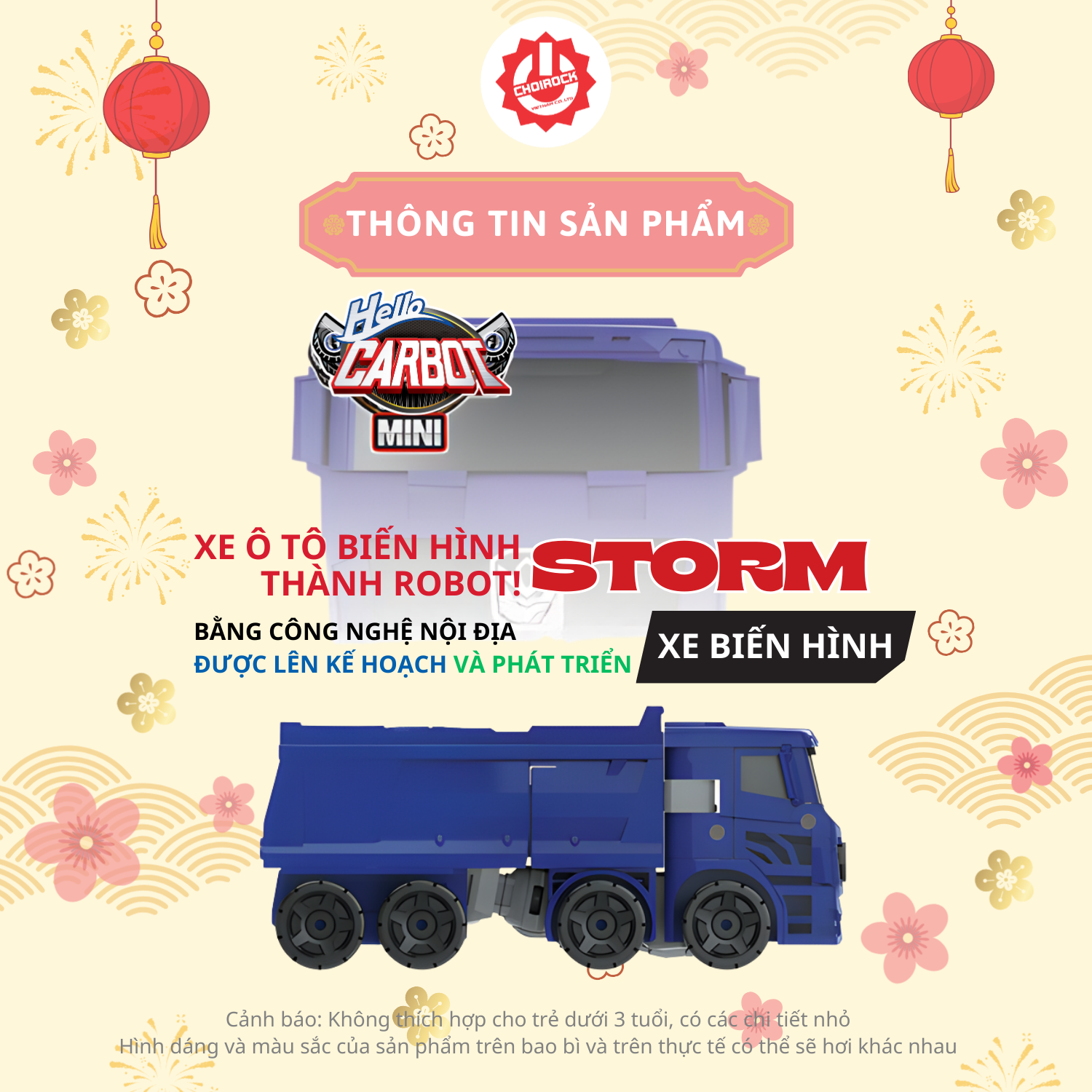 Hello Carbot Mini Storm là sản phẩm mới thuộc dòng đồ chơi biến hình nổi tiếng Hello Carbot. Với thiết kế hiện đại, màu sắc bắt mắt cùng khả năng chuyển đổi linh hoạt giữa xe và robot, Mini Storm chắc chắn sẽ mang đến những giây phút vui chơi bổ ích cho trẻ nhỏ. Đây là món đồ chơi lý tưởng dành cho các bé đam mê công nghệ, robot và những trận chiến giả tưởng đầy kịch tính.